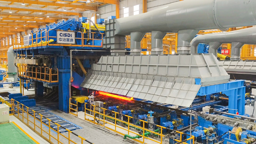 由中冶赛迪提供全线关键工艺、装备及控制技术的首条中国自主化大型万能重轨、型钢生产线河北永洋特钢重轨万能连轧生产线,打破了万能轧机工艺及装备技术长期依赖进口的局面,有效解决了轨道用钢领域“卡脖子”难题,大大推动了我国轨道用钢生产工艺及装备技术进步。